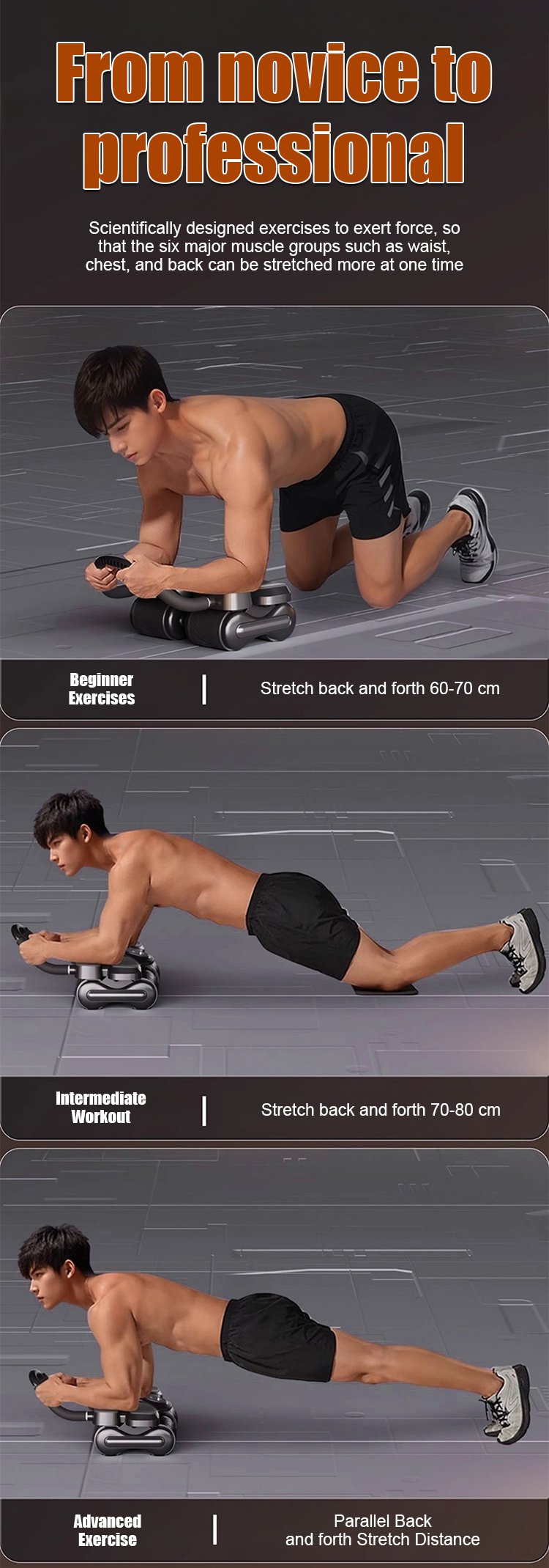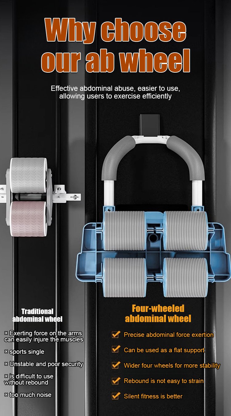 Use the four-wheel automatic rebound abdominal curling wheel to shape perfect abdominal muscles and easily tighten the abdomen.